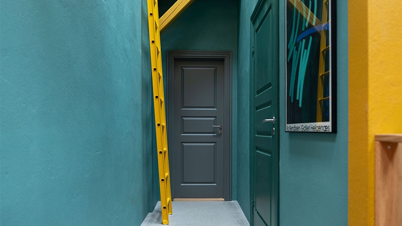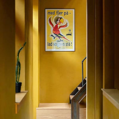 Eller hvorfor ikke hente inspiration fra vægfarven og tone en maling til træværk i samme farve for at bruge den på andre materialer, spørger Karsten retorisk. Det gule trin blev en smuk indretningsdetalje, da det blev lakeret i samme farve som bjælkerne og blev stillet mod den turkise væg. Karsten kan give lige så mange tips, det skal være, med hensyn til hvordan malearbejdet kan udvikles. Men på et tidspunkt må vi jo runde af og stille det sidste spørgsmål.